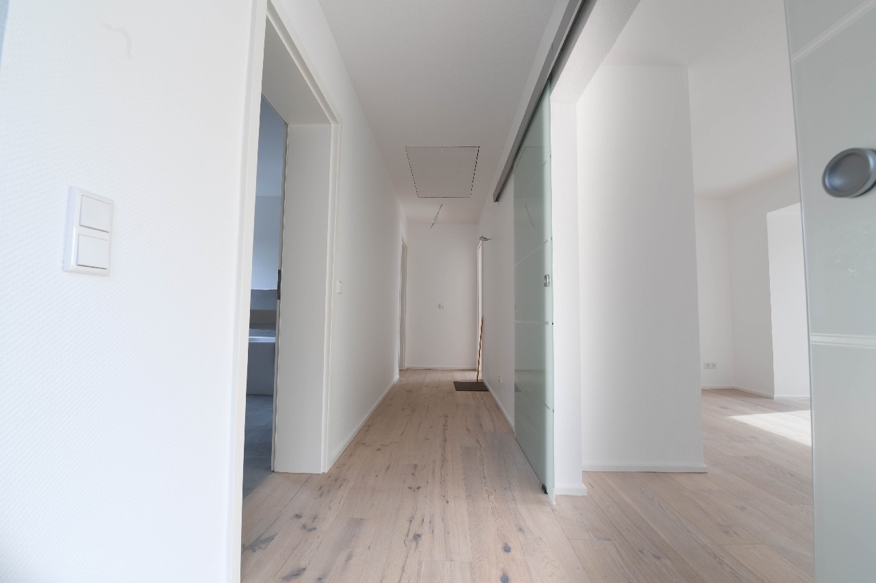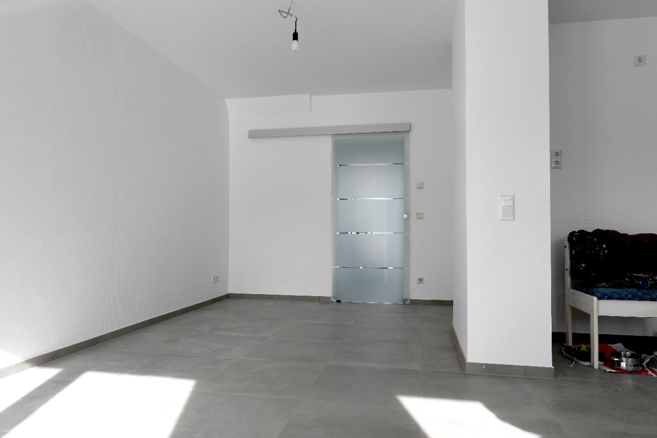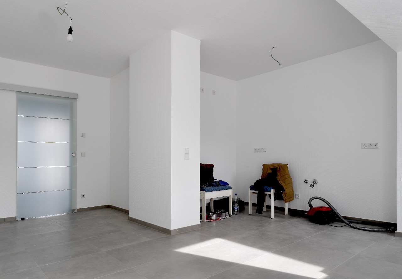 Im Erdgeschoss wurden großformatige und hochwertige Fliesen verlegt.