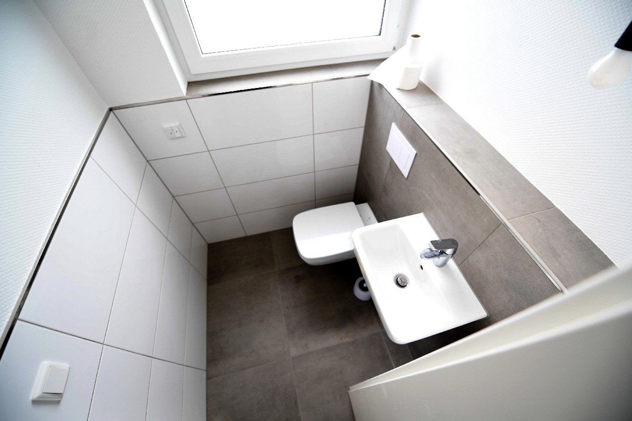 Ein modernes Gäste-WC und ein Hauswirtschafts- / Technikraum vervollständigen das Raumangebot im Erdgeschoss.