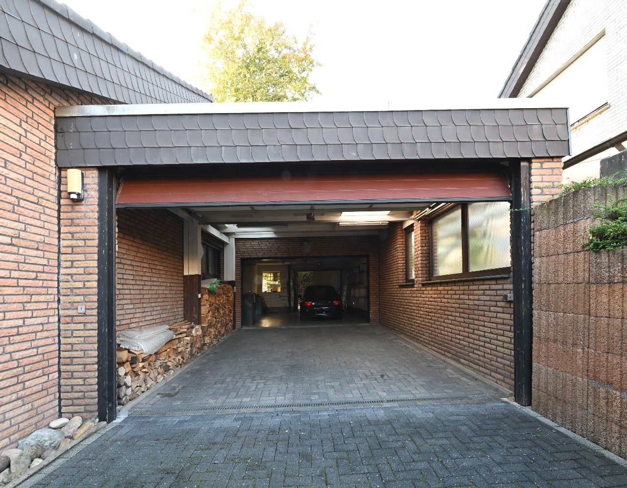 In der großzügigen Garage mit vorgebautem Carport und zwei elektrischen Sektionaltoren haben nicht nur Ihre Autos, sondern auch Ihre Fahrräder, Motorräder, usw. Platz.